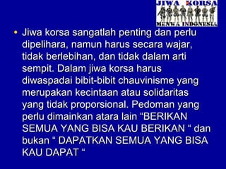 Kerasionalan tersebut untuk mencegah agar tidak tergelincir kedalam iklim romantisme. Arti Jiwa KorsaBaru baru ini kata korsa menjadi kata yang sering di dengar dan di tulis dan literatur dan tulisan. Mampu menghargai pendapat kelompok ide maupun gagasan yang bertolak belakang dengan kita.